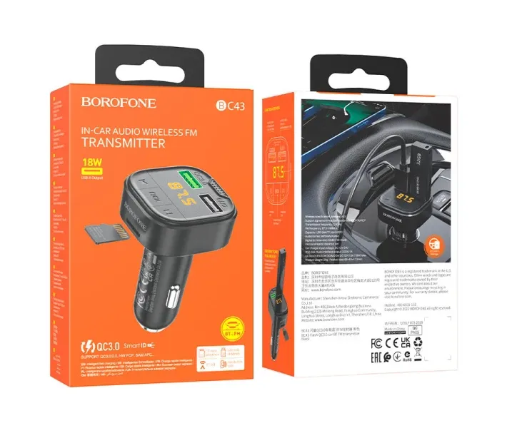 FM-трансмітер BOROFONE BC43 Flash (QC3.0 2USB 18W) – це потужний автомобільний зарядний пристрій, що дозволяє не тільки швидко заряджати Ваш телефон, але й відтворювати музику з телефону, планшета або USB-накопичувача.