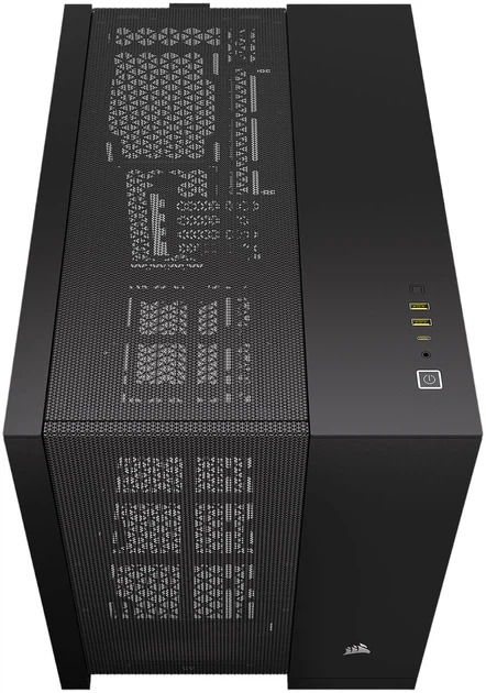 Корпус для ПК CORSAIR 2500D AIRFLOW Mid-Tower забезпечує винятковий повітряний потік і охолодження завдяки повним сітчастим панелям і двокамерному дизайну для простої, приголомшливої ​​конструкції.
