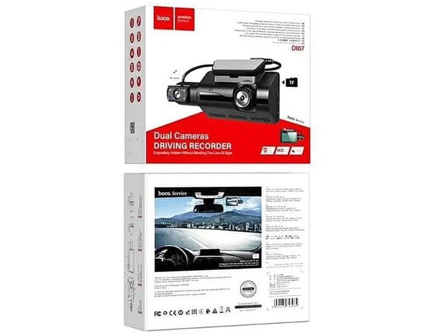 Відеореєстратор Hoco DI07 – чудова річ для сучасного водія. Реєстратор має основну та додаткову камеру, ця додаткова камера обертається на 360 градусів і тому її можна направити на дорогу або на салон, запис відео відбувається на карту пам’яті.